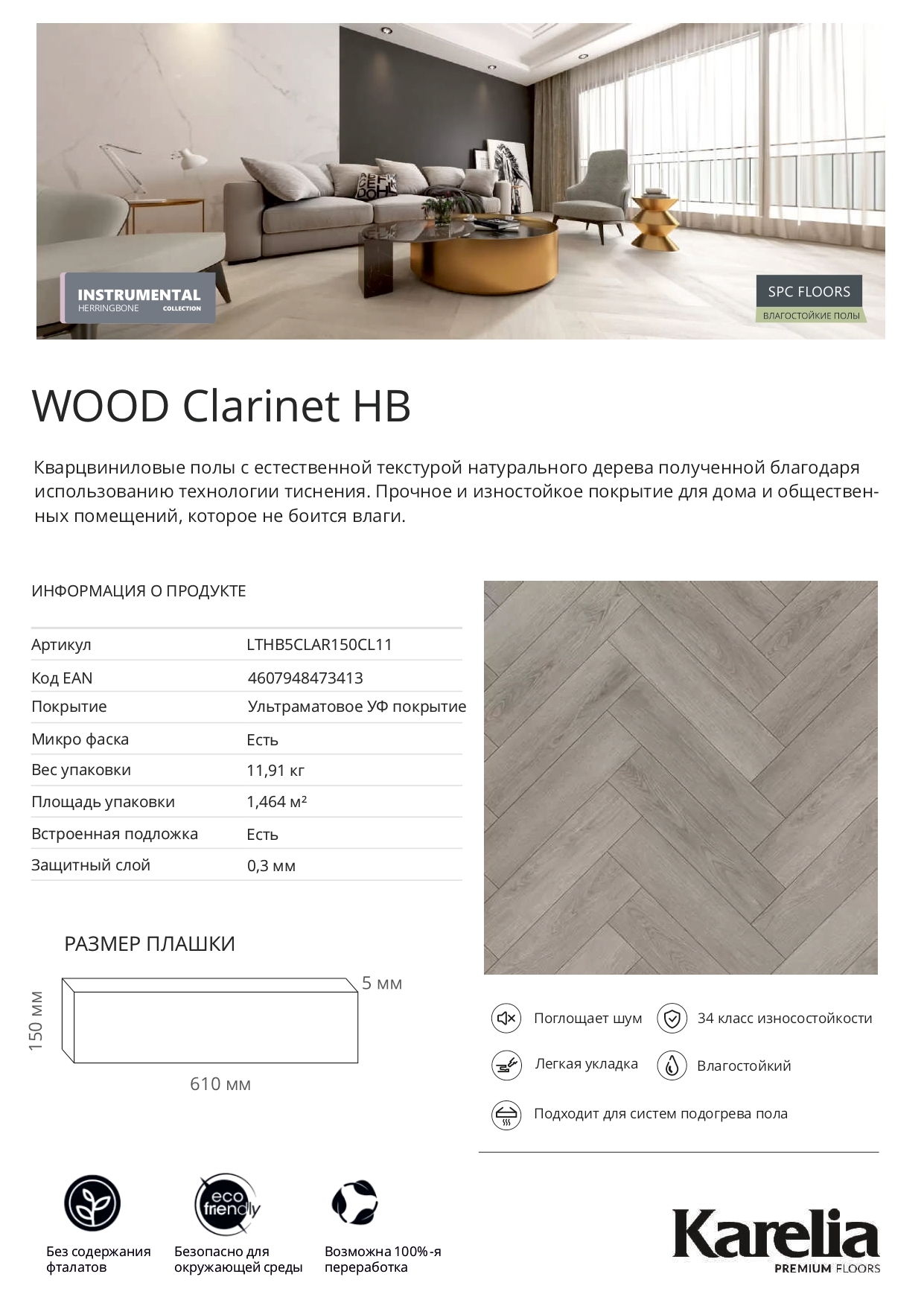 SPC плитка замковая Karelia Instrumental Кларнет Английская Ёлка 600*150*5 мм (1.44 м2) - цена 3350.00 руб. за м2. Данное напольное покрытие толщиной 5 мм, поставляется со встроенно подложкой, типом соединения замковое соединение и имитация дерева- Дуб. Поверхность имеет Серый тон и тип фаски микро фаски. Чтобы купить в интернет-магазине SPC плитка Karelia из коллекции Instrumental, оформите заказ на сайте Parketbrothers.ru или свяжитесь с нами любым удобным способом, наши менеджеры с радостью помогут вам и ответят на все интересующие вопросы.